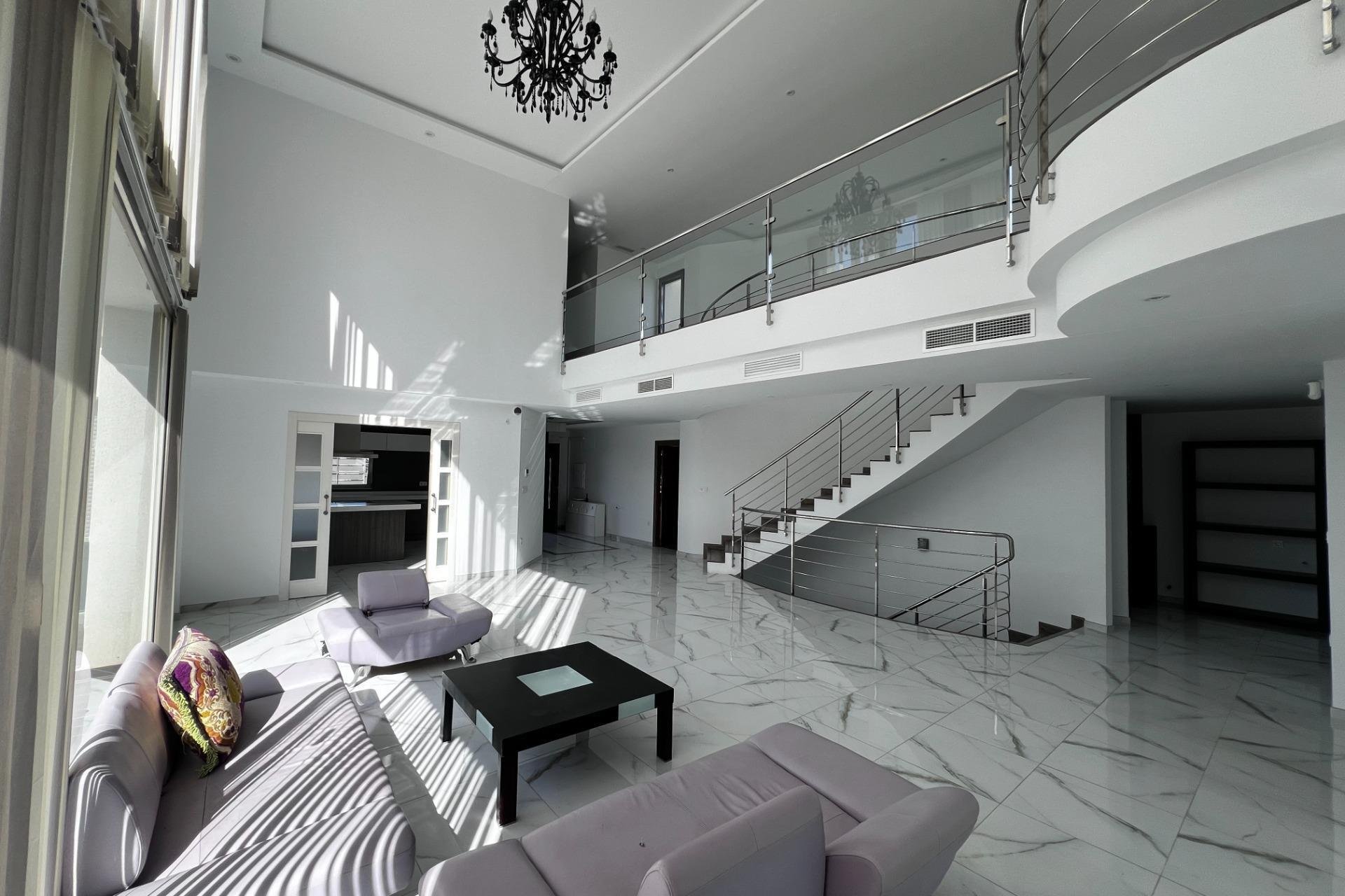 REF: GV-107. Ginta Veisa inmobiliaria les presenta esta magnífica vivienda urbana desarrollada por el prestigioso estudio de arquitectura Salvador Amorós. Donde la luz invade cada uno de los rincones de la misma gracias a sus amplios ventanales y sus cuatro orientaciones.~~Cuenta con espacios diferenciados y perfectamente conectados entre sí con doble altura en la estancia principal, con acceso directo a la cocina, baño, una habitación extra.~~Al subir por su escalera de diseño encontramos la planta donde se ubican las dependencias destinadas al descanso, terrazas-solárium y miradores.~~En la planta sótano encontramos un segundo salón-comedor, una sala de gimnasio, despacho, lavanderia, baño y un patio con ventilación natural.~~La vivienda se completa con un espacioso jardín, piscina y junto a la vivienda se encuentra una zona infantil de uso exclusivo de la urbanización.~~Los acabados de la vivienda son de auténtico lujo: carpintería exterior de rotura de puente térmico abatible y oscilo-batiente con vidrios de alto aislamiento e insonorización, carpintería interior lacada en blanco, con puertas correderas ocultas en cocina y puertas de madera de roble zebrano en planta superior. Los suelos son de porcelánico rectificado de gran formato y los cerámicos de diseños de tendencia.~~La ubicación es excelente al estar muy próximo a la ciudad de Elche, en una zona de urbana de lujo y con muy buen acceso a la autovía A7.~~Si buscas una vivienda de diseño exclusivo, alto standing y en una zona tranquila, esta es tú casa.~~También cabe la posibilidad de un alquiler con opción a compra.~~IMPRESCINDIBLE GARANTÍAS DE SOLVENCIA.~~***Este anuncio puede contener errores. La información se muestra a título informativo, no comprometiendo contractualmente a la agencia. Tanto los datos, como las imágenes y planos pueden estar sujetos a cambios, por lo que le invitamos a que, si precisa una información más exacta y detallada, comprobar datos, así como situación jurídica de los inmuebles, contacte con nosotros y le atenderemos a la mayor brevedad posible.~~Notaria, Registro e Impuestos no incluidos en el precio publicado.~